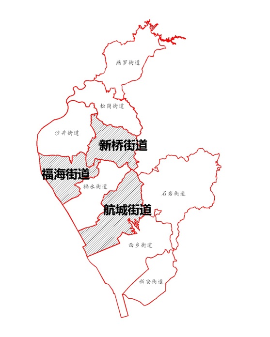 隨著粵港澳大灣區蓬勃發展,寶安區已進入建設“濱海寶安、產業名城、活力之區”的嶄新發展階段,為解決各街道現狀空間無序,發展空間不足,土地利用效率不高,公共設施不足等問題,規劃對各街道發展進行超前謀劃,精準定位,以國際一流標準為對照,指導各街道規劃建設,加快城市更新步伐,提升土地利用效率,提高空間品質和環境質量。項目對象是為寶安區新設立的三個街道,分別是新橋街道、福海街道以及航城街道,在新形勢,新要求,新目標下,寶安新設街道將迎來新的發展春天。