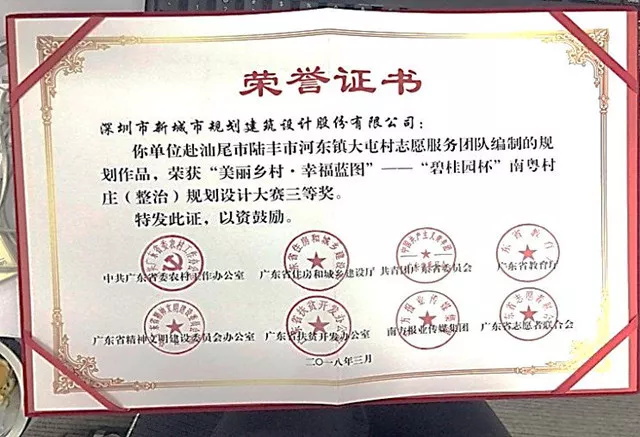 本次規劃過程中將“自上而下”和“自下而上”兩種工作方法相結合,采用“調查問卷+全過程公眾參與+公示”的工作模式,從現狀調研、初次溝通、成果修改匯報、到村民大會等每個階段,均有村民代表參與其中,并提出具體的想法和意見,及時對規劃工作的方向和內容進行反饋,形成本次面向實施、村民認可的規劃設計成果。最終,兩個項目團隊分別榮獲“美麗鄉村·幸福藍圖”——“碧桂園杯”南粵村莊(整治)規劃設計大賽二等獎、三等獎,為我司在未來的村莊規劃設計工作積累了寶貴的實踐經驗。