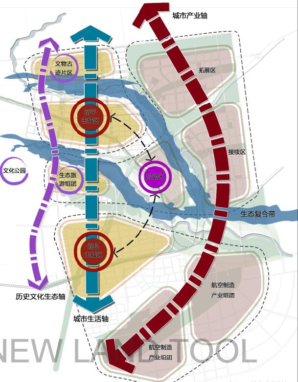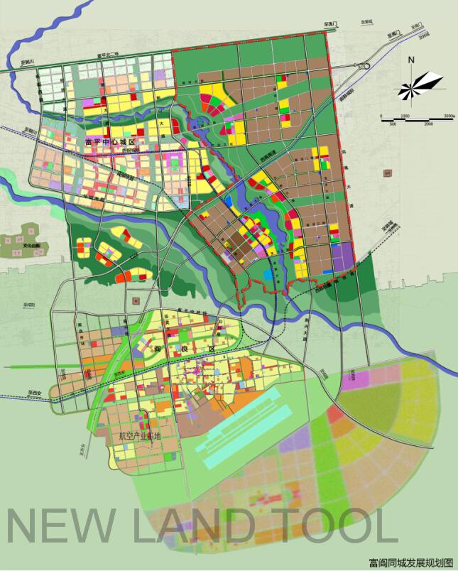 規劃在十八大新型城鎮化的背景下,擺脫傳統產業轉移的發展思路,提出以大項目、大企業帶動的模式,充分發揮富平毗鄰西安閻良國家航空高技術產業基地的優勢,促進閻富同城,實現富平產業經濟的跨越發展,在具體的規劃中構建富平縣中心城區、閻良中心城區和產業園區全面對接的道路交通體系,促進富閻同城化的進程。另外,規劃強調應充分保障城鎮化過程中原住民的發展訴求,統籌城鄉發展步伐,實現發展成果為全體人民共享。同時,規劃以產城融合為目標,打造宜居、宜業的綜合性產業新城。