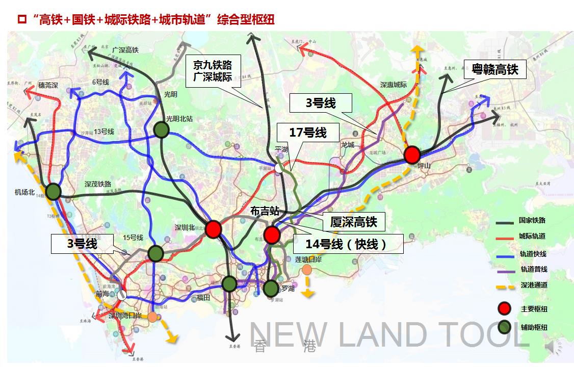 深圳東站位于深圳市幾何中心,是市級核心樞紐,軌道3、5、14、17號線的換乘站,是全市國鐵系統“四主、五輔”中的主要綜合交通樞紐和陸上交通門戶,同時也是特區一體化戰略優先發展區,是龍崗區的西部門戶。