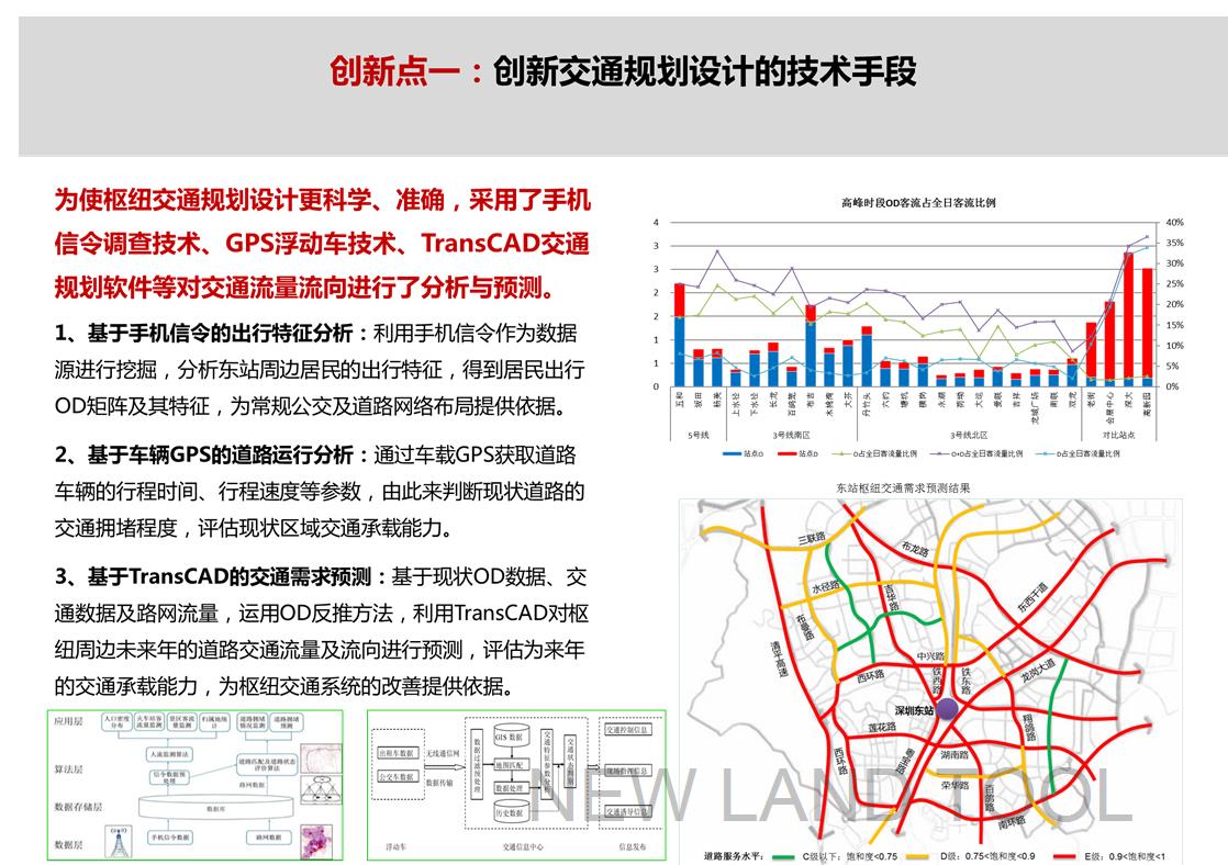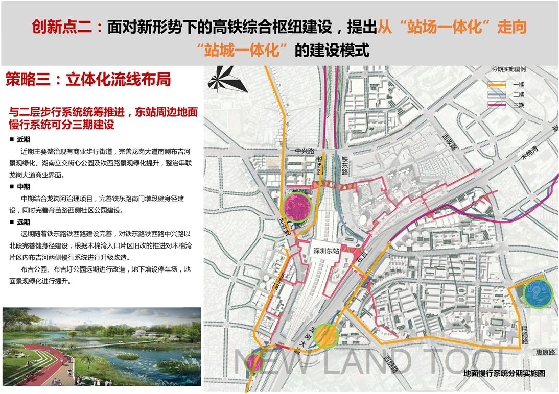本項目面對新形勢下的高鐵綜合樞紐建設,提出從“站場一體化”走向“站城一體化”的建設模式。東站樞紐采用集成化交通設施、復合化城市功能、立體化流線布局,首創龍崗區高鐵綜合樞紐的城站一體化模式。